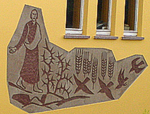 Der Saal erhielt zwei schöne Buntglasfenster des Dresdner Künstlers Horst Räcke, die die Verkündigung an die Hirten und die Geburt Jesu darstellen. Nach dem Umbau wurden sie in den neuen Saal eingebaut. Die Außenfront ziert ein großes Sgrafitto, das das Gleichnis vom vierfachen Acker zum Inhalt hat.